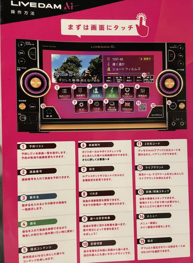 入力方法は「デンモク」と呼ばれる普段、楽曲予約をしているタブレットのような端末や、本体に直接入力することでできます。